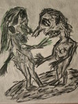 Tekeningen die vaak primitieve, heftige gevoelens zoals angst, diep verdriet, agressie uitdrukken.